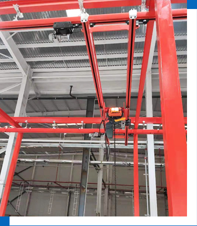 將KBK懸掛起重機主梁吊掛裝置與軌道上的小車或承載粱連接,當(dāng)起重機與軌道呈直角布置時,應(yīng)使主梁吊掛裝置垂直。